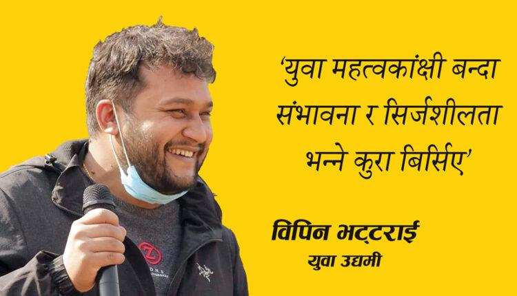 भनिन्छ, मुलुकको समृद्धिका संभावना युवाका काँधमा हुन्छन् तर हाम्रो परिभेष र अभ्यासलाई हेर्दा युवाको निष्किृयता डर लाग्दो छ । युवामा हराएको सिर्जशीलता र सपनाले भोलि देश कुन बाटोमा जाला ? यसको चिन्ता गर्ने बेला शुरू भएको छ । समाजमा माथि भनिएभन्दा अपवाद पनि छन् । रामेछापका युवा उद्यमी तथा सामाजिक अभियान्ता विपिन भट्टराई हरेक कुरामा संभावना देख्छन् । हरेक कुरामा आफ्नो धारणा बनाउन सक्षम उनी संभावनाको थुप्रोमा हराएका निष्किृय युवा थोरै मात्र पनि सक्रियता देखाउन सके समस्या टाढिने बताउँछन् । उनीसँग हामीले समस्या, अभ्यास, संभावना र प्रयासका सन्दर्भका कुराकानी गरेका छौं ।