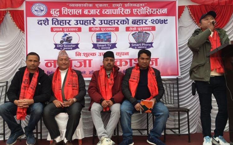 कार्यक्रममा बुद्ध विशाल बजार व्यापारिक एसोसिएसनका अध्यक्ष केशवबहादुर खत्रीले ग्राहकहरूलाई बुद्ध विशाल बजार व्यापारिक एसोसिएसनभित्रका कुनै पनि पसलबाट ५ सयको समान खरिद गर्दा एउटा उपहार कुपन र १५ सय भन्दा बढीको खरिद गर्दा २ वटा उपहार कुपन निःशुल्क उपलब्ध गराइएको बताए ।