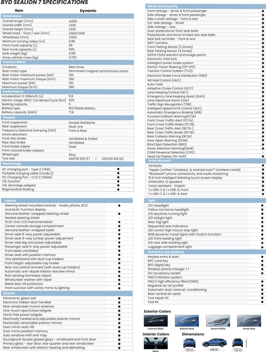सिलायन ७ मा ‘एडभान्स मल्टी लिंक सस्पेन्सन’ छ । १५.६ इन्चको रोटेटिङ टच स्क्रिनको मज्जा लिन सकिनेछ । २.१ एमएमको पानारमिक ग्लास रुफ पनि यो गाडीको आकर्षण बन्नेछ । ११ वटा एअरब्यागसहित सुरक्षा फिचर्सलाई प्राथमिकतामा राखिएको छ ।