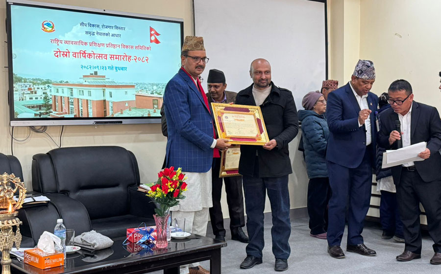 श्रम, रोजगार तथा सामाजिक सुरक्षामन्त्री राजेन्द्र सिंह भण्डारी, श्रम सचिव एवं राष्ट्रिय व्यावसायिक प्रशिक्षण प्रतिष्ठान विकास समितिका अध्यक्ष डा. दीपक काफ्ले र प्रतिष्ठानका कार्यकारी निर्देशक रमेश कुमार बखतीले महासंघलाई संयुक्त रूपमा सम्मान वितरण गरे ।