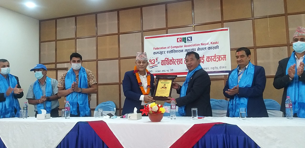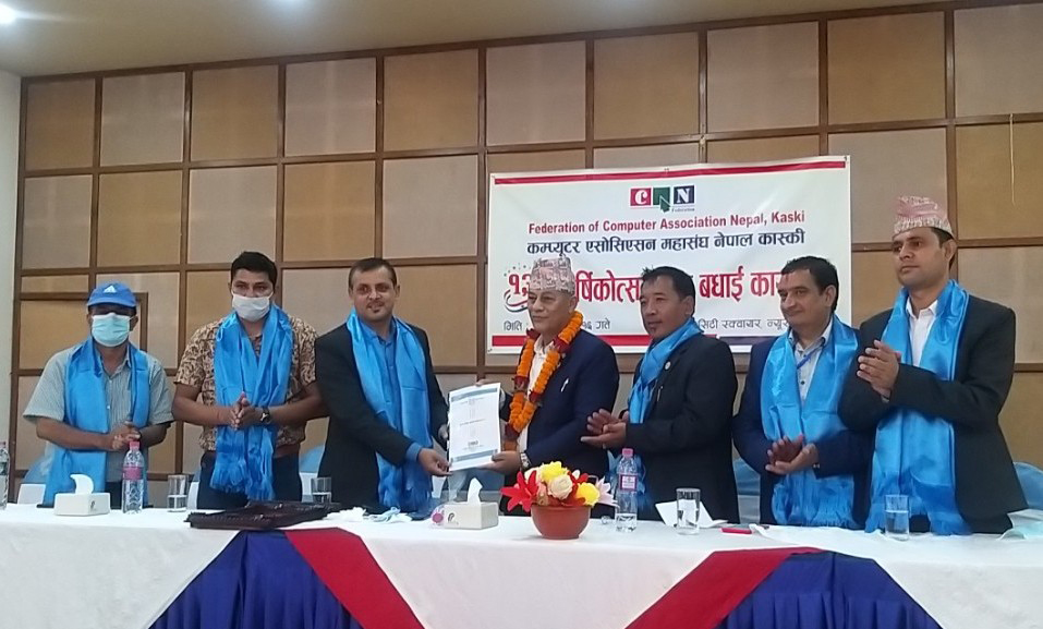 पोखरा । कम्प्युटर एसोसिएसन नेपाल महासंघ कास्की शाखाले १३ औं वार्षिक उत्सवको अवसरमा कानुन सञ्चार तथा प्रदेशसभा मामिला मन्त्री माननीय विन्दु कुमार थापालाई सूचना प्रविधि सम्बन्धी संस्थागत अवधारणा पत्र पेश गरेको छ । गण्डकी प्रदेशमा सूचना, सञ्चार तथा प्रविधिको विकास, प्रवद्र्धन र नियमन गर्न संघीय शासन प्रणाली अनुकुल प्रदेशस्तरमा सूचना तथा प्रविधि सम्वन्धी आधारभूत पुर्वाधारको विकास तथा सूचना प्रविधिको महत्वलाई उजागर गर्न क्यान कास्कीले तयार गरेको संस्थागत अवधारण पेश गरिएको हो ।