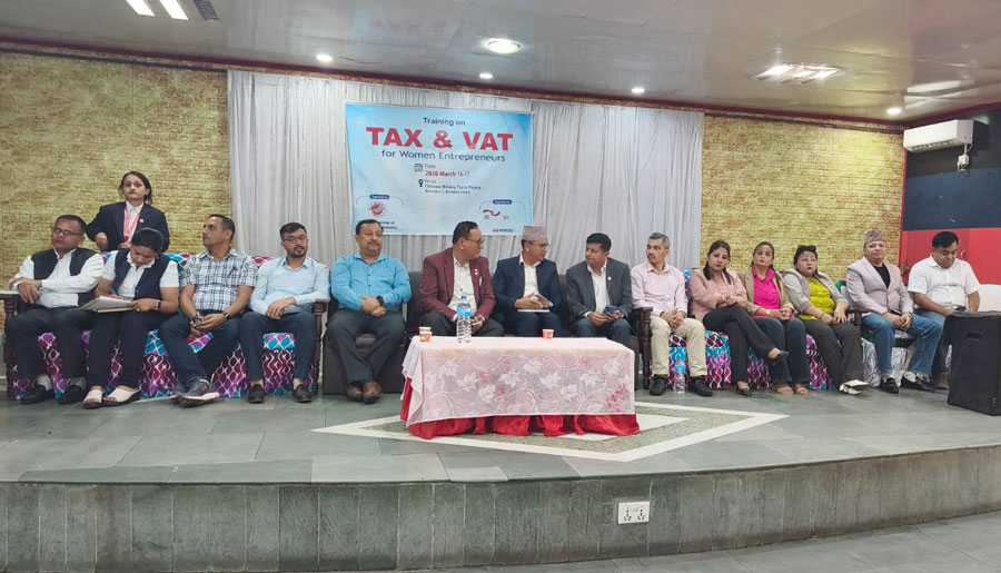 महिला उद्यमहरुलाई आयकर तथा मूल्य अभिवृद्धि कर लगायत मिसम्याच एवं करका नीतिहरुका बारेमा जानकारी गराउने उद्देश्य तालिमको आयोजना गरिएको संघले जनाएको छ । तालिम चितवन उद्योग वाणिज्य संघको आयोजना एवं GIZ RSRSD को प्राविधिक सहयोगमा कृष्णपुर स्थित चितवन होलिडे पार्टी भेनुको सभाहलमा भएको थियो ।