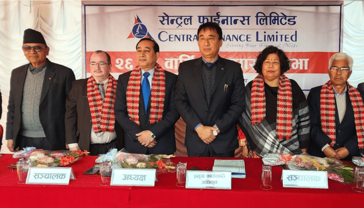 काठमाडौं । सेन्ट्रल फाइनान्स लिमिटेडको २६ औं वार्षिक साधारण सभा शुक्रबार सम्पन्न भएको छ। साधारण सभाले आर्थिक वर्ष २०७८र७९ को नाफाबाट सेयरधनीहरुलाई पाँच प्रतिशत नगद लाभांश दिने निर्णय पारित गरेको छ।
