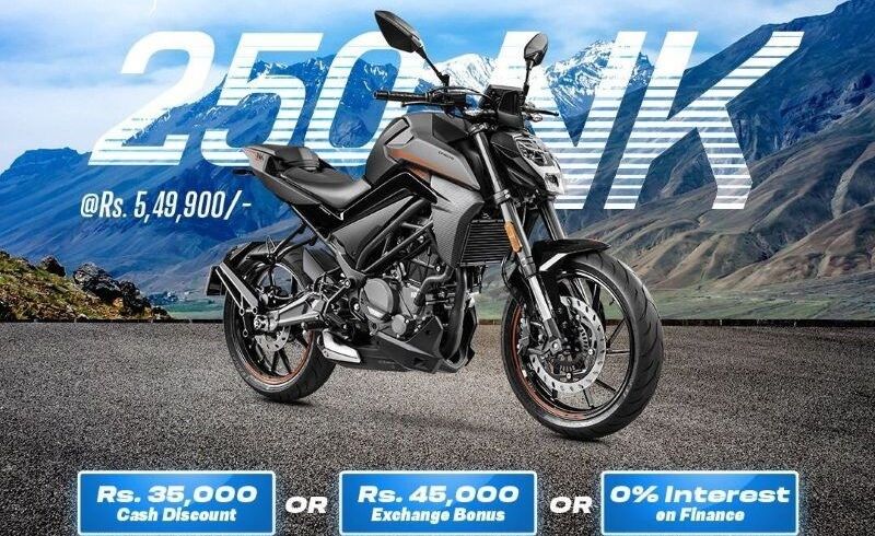 यस अफरअन्तर्गत सीएफमोटोको एनके २५० मोटरसाइकल खरिद गर्दा ३५ हजार नगद छुट र एक्स्चेन्जमा ४५ हजारसम्मको एक्स्चेन्ज बोनस पाइने जनाएको छ । त्यसैगरी, ५० प्रतिशत डाउनपेमेन्ट गर्दा शुन्य प्रतिशत ब्याजदरको सुुबिधा पाइने छ भने ४० प्रतिशत डाउनपेमेन्टमा १५ हजार नगद छुट पाइने बताइएको छ ।