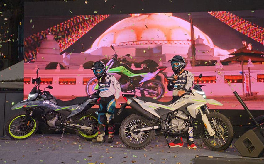 काठमाडौैं । नेपालको लागि सिएफमोटोको आधिकारिक तथा एक मात्र वितरक ऋषि ट्रेड सेन्टरले बहुप्रतिक्षित सिएफमोटो २५० डुअल इएफआई मोटरसाइकल नेपालमा सार्बजनिक गरेको छ । कार्यक्रममा मोटरसाइकल पारखी, चर्चित बाइकर, सामाजिक सञ्जालका इन्फ्लुएन्सर, सञ्चारकर्मी तथा सीएफमोटोको अन्तर्राष्ट्रिय टोलीका प्रतिनिधिहरूको उपस्थिति थियो ।