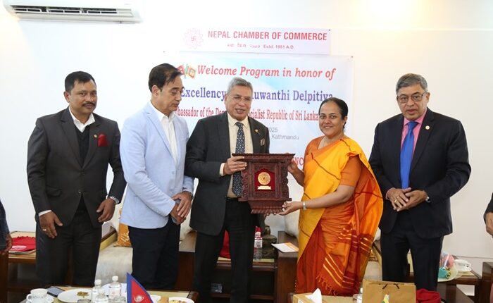 काठमाडौं । नेपाल चेम्बर अफ कमर्सको पदाधिकारी टोली र नेपालका लागि श्रीलङकाका राजदूूत रुवान्थी डेल्पितीयाबीच दुुई देशको व्यापार सहजीकरण एवं हवाईसेवा विस्तार गर्ने विषयमा छलफल भएको छ । नेपाल र श्रीलङबीच कुुटनीतिक सम्वन्धका साथै सामाजिक, सांस्कृतिक र धार्मिक सम्वन्ध ऐतिहासिक रहेको पृष्ठभूूमिमा व्यापार सहजीकरण गर्दै हवाई सेवा विस्तार गरेर पर्यटन क्षेत्रमा दुुवै देशले लाभ लिन सक्नुुपर्ने विषयमा छलफल भएको थियो ।