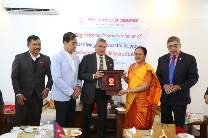 राजदूूत डेल्पितीयासंग चेम्बर अध्यक्ष कमलेश कुमार अग्रवालले नेपाल श्रीलंकाबीचको व्यापारको आकार बार्षिक औषतमा मुुस्किलले २ दशमलव ५ मिलियन अमेरिकी डलर मात्रै रहेको र नेपालको निर्यात निकै कम रहेको बताए । नेपालले १ दशमलव ४० मिलियन अमेरिकी डलर बराबरको बस्तुु आयात गर्दा शुुन्य दशमलव ७० मिलियन डलरको मात्रै निर्यात गरिरहेको अध्यक्ष अग्रवालले बताए ।