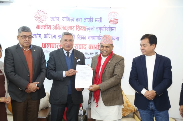 चेम्बर पदाधिकारीहरुसंगको भेटवार्तामा उद्योग वाणिज्य तथा आपूर्तिमन्त्री सिन्हाले मुलुकभित्र औद्योगिक र व्यवसायिक वातावरण निर्माणका लागि सहजीकरणको प्रयास भईरहेको बताए । निजी क्षेत्र र आम सेवाग्राहीलाई प्रसाशनिक र नीतिगत झण्झट कम गर्नका लागि सरकारले प्रयास गरिरहेको मन्त्री सिन्हाको भनाई छ ।