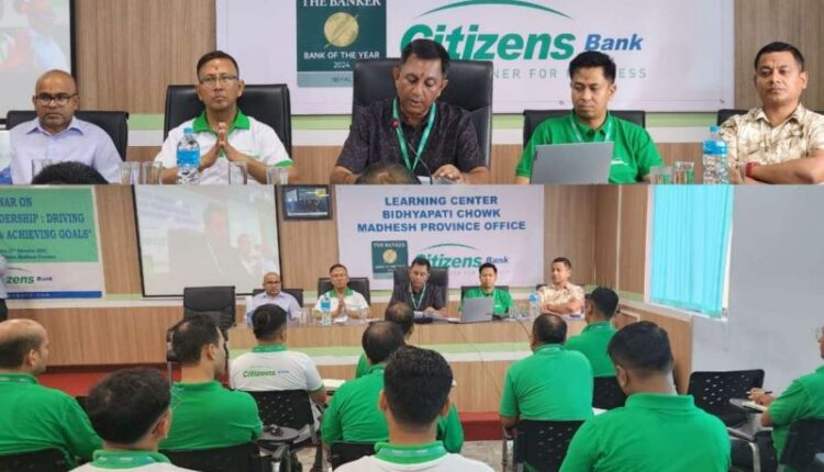 काठमाडौं । सिटिजन्स बैंक इन्टरनेसनल लिमिटेडले ‘मधेश लिडरसिप : ड्राइभिङ पर्फरमेन्स एण्ड अचिभिङ गोल्श’ सम्बन्धी सेमिनार गरेको छ । शाखा–प्रबन्धक तथा अन्य सहकर्मीलाई लक्षित गर्दै मधेश प्रदेशमा भएको सेमिनारमा बैंकका प्रमुख कार्यकारी अधिकृत गणेशराज पोखरेल, उप–प्रमुख कार्यकारी अधिकृत र वरिष्ठ कार्यकारी लगायत सहभागी थिए ।