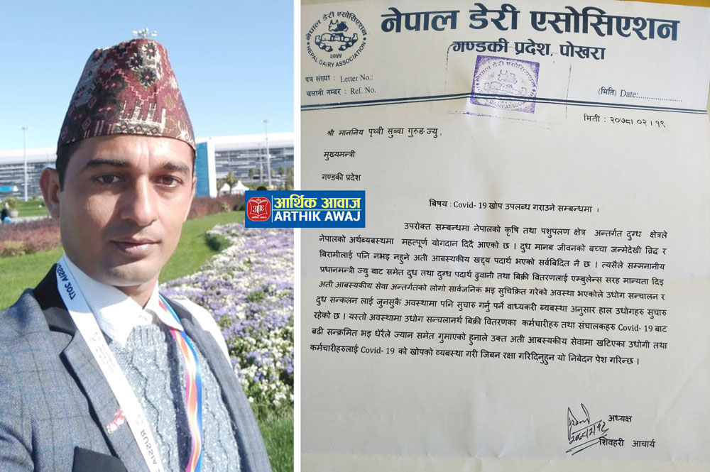 नेपाल डेरी एसोसिएसन गण्डकी प्रदेशले बिहीबार मुख्य मन्त्री पृथ्वीसुब्बा गुरुङसहित स्वास्थ्य तथा जनसंख्या मन्त्रालय र जिल्ला स्वास्थ्य कार्यालय कास्कीमा ज्ञापन पत्र बुझाउँदै खोपमा प्राथमिकता दिन आग्रह गरेको हो ।