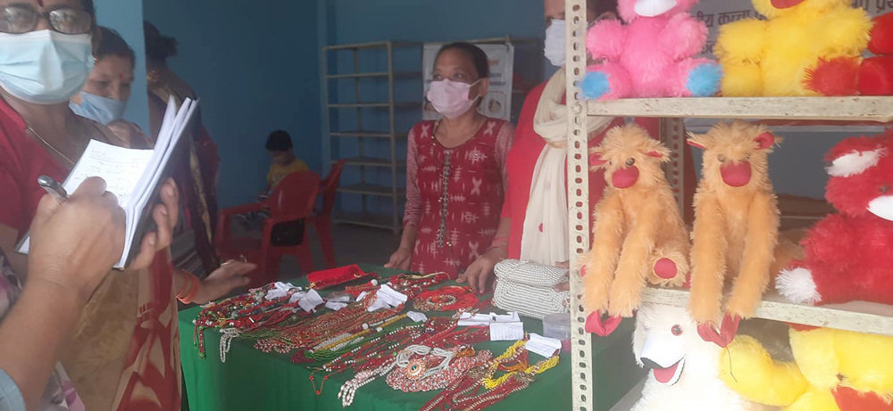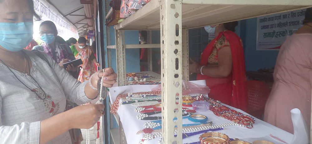 सामाजिक दूरी कायम गरेर १० वटा स्टलमा स्थानीय महिलाले उत्पादन गरेका सामग्री प्रदर्शनमा राखिएको छ । आत्मज्ञान महिला समूहले महोत्सवमा परम्परागत ग्यारेन्टीका गरगहनाको स्टल राखेको छ । नगरपालिकाले तालिम दिएर गहना बनाउन सिकाएपछि महिला समूहले कण्ठ, शिरफूल, शिरबन्दी, नाकढुङ्ग्री, मारवाडी, छड्के तिलहरी, माइली, साइली र कान्छी तिलहरीलगायतका गरगहना बनाउने गरेको समूहका अध्यक्ष इन्दिरा प्रसाईले बताइन् । उनीहरुले बनाएको गहना हेर्न महोेत्सवमा भीड लागेको थियो ।