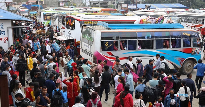 काठमाडौं । दशैंको जमरा राख्ने तयारी सुरु भएसँगै काठमाडौं उपत्यकाबाट मानिसहरू गाउँतर्फ लस्करै फर्किन थालेका छन् । वर्ष दिनपछि घर आँगनमा पुग्ने यात्रुहरूको चहलपहल राजधानीको सडकदेखि बसपार्कसम्म देखिन थालेको छ । उपत्यका ट्राफिक प्रहरी कार्यालयका अनुसार पछिल्लो २४ घण्टामा करिब ४३ हजार यात्रु काठमाडौं छाडेर बाहिरिएका छन् भने आइतबार बिहान ६ बजेदेखि सोमबार बिहान ६ बजेसम्म करिब २८ हजार यात्रु काठमाडौं भित्रिएका छन् ।