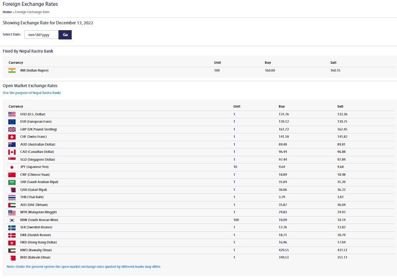यस्तो छ आजको मुद्रा विनिमयदर :