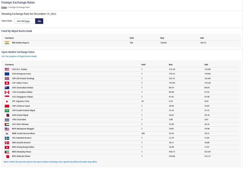 यस्तो छ आजको मुद्रा विनिमयदर :