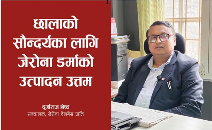 कस्मेटिक क्षेत्रमा पछिल्लो समय धेरै प्रडक्टहरु बजारमा आइरहेका छन् । विशेष गरी मानिसको सौन्दर्यसँग सरोकार राख्ने र छालासँग प्रत्यक्ष जोडिने भएकाले पनि सौन्दर्य प्रडक्टहरु बढी संवेदनशील हुन्छन् । सौन्दर्य तथा छालाको सुरक्षाका लागि बजारमा आएका विविध प्रडक्ट मध्ये ‘जेरोना डर्मा’ पनि एउटा प्रडक्ट हो । जेरोना वेलनेस प्रालिले हालैमात्रै नेपाली बजारमा उपलब्ध गराएको यो प्रडक्टका सन्दर्भमा कम्पनीका सञ्चालक दुर्गाराज श्रेष्ठसँग गरिएको संक्षिप्त कुराकानीः
