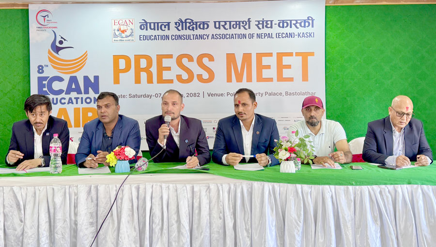 पोखरा । नेपाल शैक्षिक परामर्श संघ (इक्यान) कास्की शाखाले आगामी भदौ २० र २१ गते पोखराको न्युरोडस्थित सिटी स्क्वायर बैंक्विटमा ‘आठौं इक्यान एजुकेसन फेयर’ आयोजना गर्ने भएको छ । इक्यान कास्कीले शनिबार पोखरामा पत्रकार सम्मेलन गरी टाइम्स एजुकेसनल कन्सल्टेन्सीको प्रस्तुतिमा शैक्षिक मेला आयोजना गर्ने जानकारी दिएको हो ।