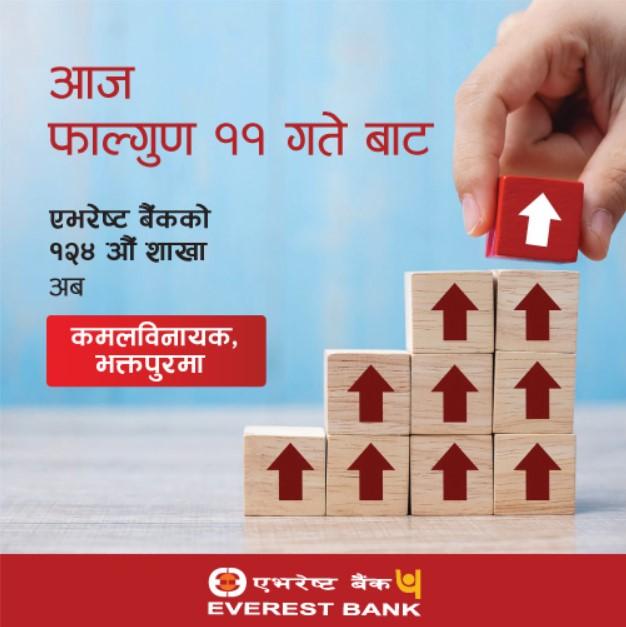 काठमाडौं । एभरेष्ट बैंकले भक्तपुरको कमलविनायकमा १२४ औं शाखा विस्तार गरेको छ । बैंकले बिहीबारबाट नयाँ शाखा कार्यालय शुभारम्भ गरी कारोबार सुरु गरेको हो ।