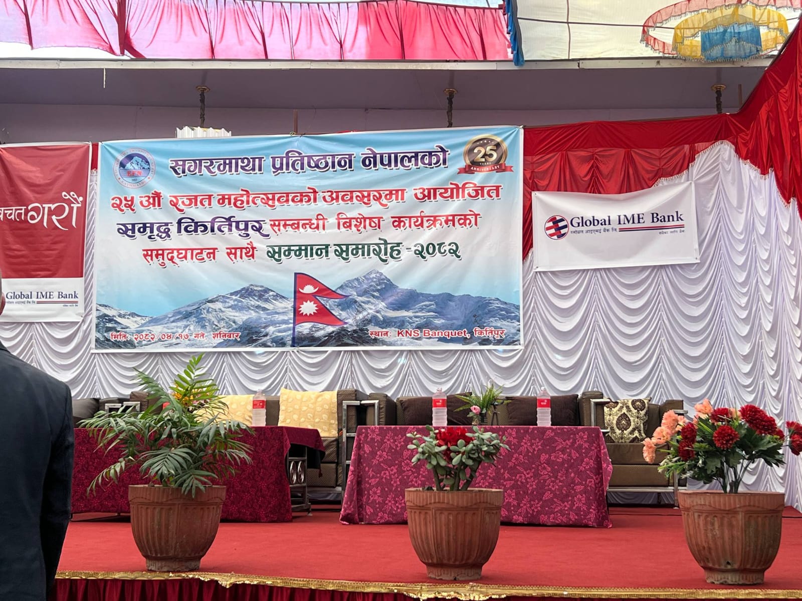 काठमाडौं । सगरमाथा प्रतिष्ठान नेपालले आफ्नो २५ औं वार्षिकोत्सवको अवसरमा विशिष्ट उद्योग व्यवसायीहरूलाई लक्षित गर्दै आयोजना गरेको ‘विशिष्ट अधिकारिकाता सम्मान’ कार्यक्रम सम्पन्न भएको छ । किर्तिपुरस्थित किचेन एण्ड ब्याङ्केटमा आयोजित सो कार्यक्रममा प्रमुख अतिथिका रूपमा प्रदीप पौडेल उपस्थित थिए ।