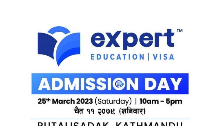 काठमाडौं । एक्स्पर्ट एजुकेशन एण्ड भिजा सर्भिसेस काठमाडौंको आयोजनामा ‘एक्स्पर्ट एड्मिसन डे’ हुने भएको छ । पुतलिसडकमा रहेको एक्स्पर्टको कार्यालयमा चैत ११ गते शनिबार ‘एडमिसन डे’ हुने भएको हो ।
