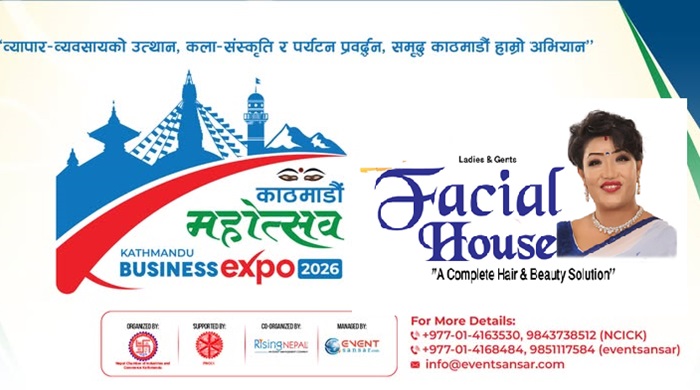 काठमाडौं । ब्युटी सलुन फेसियल हाउस आगामी माघ १४ देखि १७ गतेसम्म भृकुटीमण्डपमा आयोजना हुन लागेको ‘प्रथम काठमाडौं महोत्सव २०८२’ को ‘को-स्पोन्सर’ बनेको छ ।