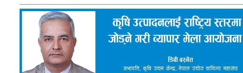 नेपाल उद्योग वाणिज्य महासंघले आयोजना गर्ने व्यापार मेलामा बजारमा माग भएका वस्तुहरु समावेश हुनेछन् । कृषि उत्पादनलाई राष्ट्रिय स्तरमा जोड्ने गरी महासंघले व्यापार मेला आयोजना गर्दै आइरहेको छ । प्रदेश, जिल्ला, नगरमा रहेका उद्योग वाणिज्य संघको समन्वयमा देशभरका व्यवसायीलाई मेलामा सहभागी गराउने कोशिसमा छौँ ।