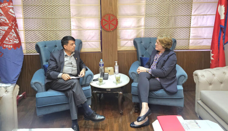 काठमाडौं । नेपाल उद्योग वाणिज्य महासंघका अध्यक्ष चन्द्रप्रसाद ढकाल र स्पेन चेम्बर अफ कमर्सकी कार्यकारी प्रमुख इमाकुलाडा रियरा रेने (Inmaculada Riera Rene) बीच महासंघ सचिवालयमा औपचारिक भेटवार्ता भएको छ । भेटवार्तामा दुई देशबीचको आर्थिक सहकार्य, व्यापार, लगानी, साना तथा मझौला उद्यम र दीर्घकालीन साझेदारीका विषयमा छलफल भएको थियो ।