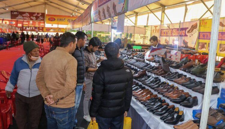 काठमाडौं । काठमाडौंको भृकुटीमण्डपस्थित ठूलो चौरमा ‘जाडोमा न्यानो जुत्ता चप्पल व्यापार मेला’ जारी छ । जाडो मौषम, लगन तथा शुभ मुहुर्तलाई मध्यनजर गर्दै फुटवयेर म्यानुफ्यक्चर्स एसोसियसन अफ नेपालले आयोजना गरेको मेलामा ग्राहकको आकर्षण बढ्दै गएको छ ।