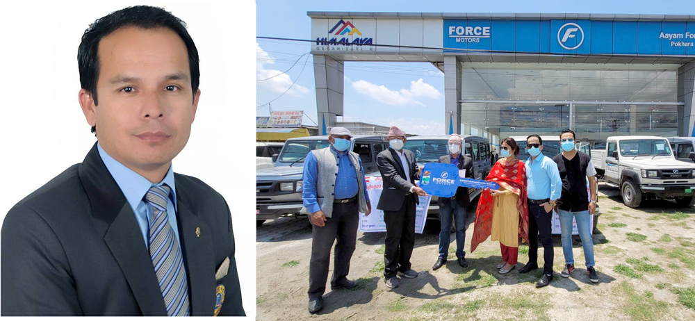 पोखरा । फोर्स मोटर्सका लागि नेपालको आधिकारिक बिक्रेता हिमालय अर्गनाइजेसन अन्तर्गतको आयाम इन्टरकन्टिनेन्टल प्रालिले कोभिड बिरामी बोक्न फोर्सका जिप सहयोग गरेको छ । कोभिड महामारीको दोस्रो लहर बढेसँगै संक्रमितहरु दिनप्रदिन बढिरहेका छन् । कोभिडको विषम परिस्थितिमा बिरामीहरुलाई गाउँगाउँबाट हस्पिटलसम्म बोक्नका लागि फोर्स जिपलाई एम्बुलेन्सका रुपमा प्रयोग गर्ने गरी कम्पनीले सहयोग गरेको हो ।