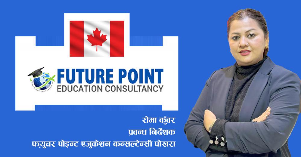 पोखराको चिप्लेढुंगामा रहेको फ्युचर पोइन्ट एजुकेशन कन्सल्टेन्सीले उच्च शिक्षा अध्ययनका लागि क्यानडा जाने विद्यार्थीलाई परामर्श लगायत आवश्यक सेवा उपलब्ध गराउँदै आइरहेको छ । एउटैमात्रै देशलाई लक्षित गर्दै सेवा प्रदान गरिरहेको फ्युटर पोइन्ट क्यानडा लक्षित कन्सल्टेन्सीहरु मध्य अग्रणी पहिचान बनाउन सफल छ । जहाँ विद्यार्थीको आकर्षण पनि देखिदै आएको छ । कन्सल्टेन्सीका सञ्चालक रोमा कुँवरले ह्युमेन रिसोर्स म्यानेजमेन्ट र साइकोलोजीमा मास्टर्ससमेत गरिसकेकी छन् । पोखरामा रहेर क्यानडालाई चिनाउन सफल कुँवरसँग क्यानडाको उच्च शिक्षा लगायत फ्युचर पोइन्टमा केन्द्रित रहेर गरिएको कुराकानीः