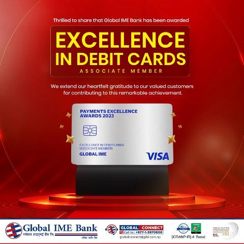 काठमाडौं । ग्लोबल आइएमई बैंक लिमिटेड भिषा पेमेन्ट एक्सिलेन्स अवार्ड २०२३ बाट सम्मानित भएको छ । भिषा इन्टरनेशनलद्वारा काठमाडौँमा आयोजित लिडरसिप कन्क्लेभमा बैंकलाई सन् २०२३ मा भिषा सदस्यमध्ये एशोशिएट सदस्यतर्फ डेबिट कार्ड प्रवद्र्धनमा उत्कृष्ट बनेकोमा उक्त अवार्ड प्रदान गरिएको हो ।