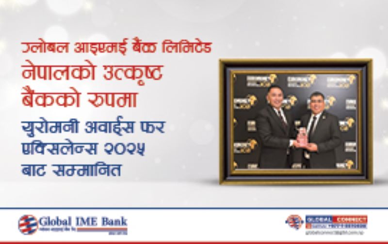 काठमाडौं । ग्लोबल आइएमई बैंक लिमिडेट ‘युरो मनी अवार्ड फर एक्सलेन्स २०२५’ को बेस्ट बैंक अवार्डबाट सम्मानित भएको छ ।