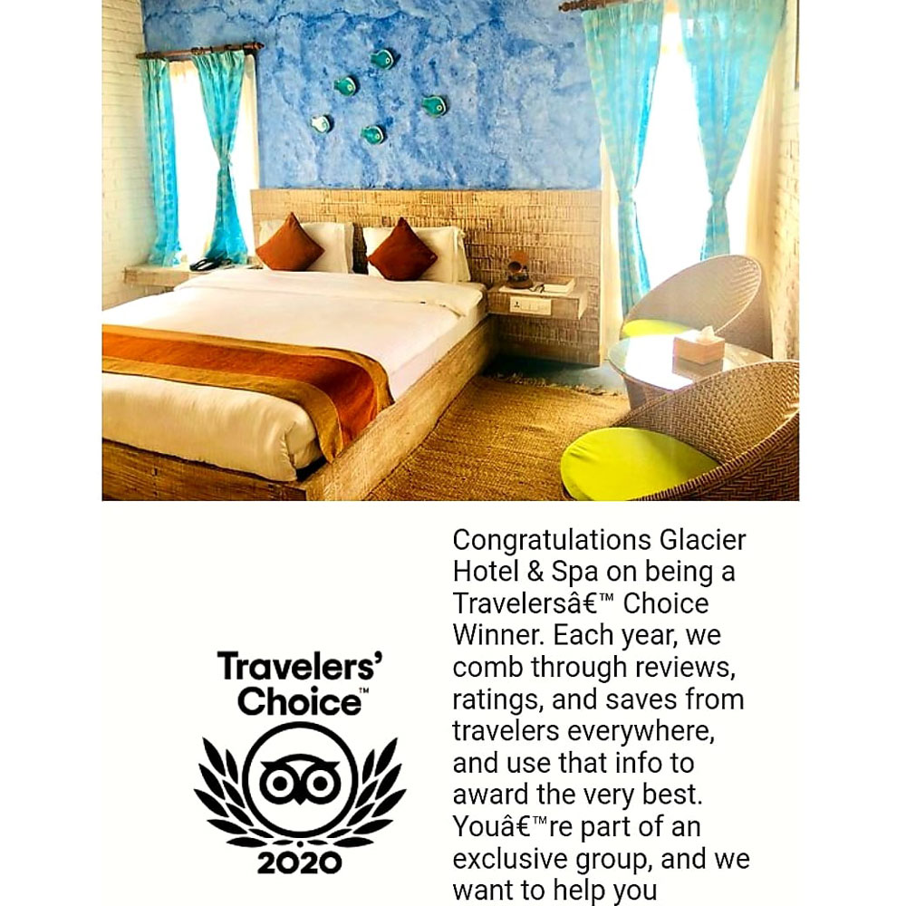 सेवा, सुविधा, आतिथ्यतासँगै कलात्मक शैलीले धेरै पर्यटकको रोजाईमा ग्लेसियर होटल पर्ने गरेको छ । होटलमा आउने पर्यटकले मन पराएकै कारण यस पटक सन् २०२० का लागि ग्लेसियरले ‘ट्राभलर्स च्वाइस अवार्ड’ प्राप्त गरेको छ । विश्व प्रशिद्ध ट्राभल वेबसाइट कम्पनी ट्रिप एडभाइजरले ग्लेसियर होटललाई उक्त अवार्ड प्रदान गरी उत्कृष्ट होटलको सूचिमा अटाएको हो ।