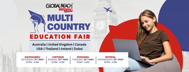 काठमाडौं । ग्लोबल रिच नेपालको आयोजनामा ‘मल्ट्री कन्ट्री एजुकेशन फेयर’ हुने भएको छ । नेपालमा रहेका ग्लोबल रिचका कार्यालयहरुमा फेयर हुनेछ ।