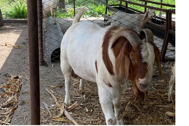 गलेश्वर । म्याग्दीको बेनी नगरपालिका–२, खवरा कृषि तथा पशुपन्छी फार्ममा पालिएका अष्ट्रेलियन बोयर जातका बोका । एउटा बोयर जातको बोकाको यहाँ रु दुई लाखसम्ममा बिक्री हुने गरेको छ । तस्बिर : ध्रुबसागर शर्मा/रासस