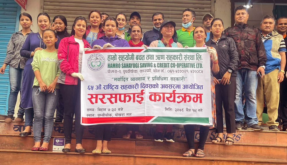 पोखरा । हाम्रो सहयोगी बचत तथा ऋण सहकारी संस्था लि पोखराको आयोजनामा सरसफाई कार्यक्रम सम्पन्न भएको छ । ६५औं राष्ट्रिय सहकारी दिवसको अवसरमा सन्दर्भमा शनिबार कार्यक्रम आयोजना गरिएको छ ।