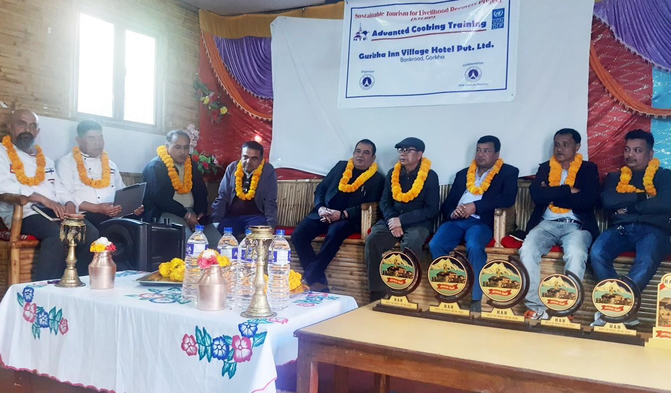 होटल संघ नेपालको आयोजना तथा संघको गण्डकी र गोरखा शाखाको समन्वयमा संचालित तालिमलाई युएनडीपी अन्तर्गतको सस्टेन्एबल टुरिजम फर लाइभ्लीहुड रिकभरी प्रोजेक्टले सघाएको थियो । तालिमको समापन गर्दै गोरखा नगरपालिकाका प्रमुख कृष्णबहादुर राना मगरले ऐतिहासिक गोरखा जिल्लाले पर्यटनको राम्रो संभावना बोकेको सन्दर्भमा आयोजित तालिमले सकारात्मक सन्देश प्रवाह गरेको बताए । गोरखा जिल्लामा थप होटल र पर्यटकीय पूर्वाधारको विकास गर्न बाँकी नै रहेको भन्दै उनले जिल्लामा पर्यटकको बसाई लम्ब्याउन नगरपालिकाले विविध योजनाहरु क्रमशः अगाडि बढाउँदै लैजाने जानकारी दिए ।