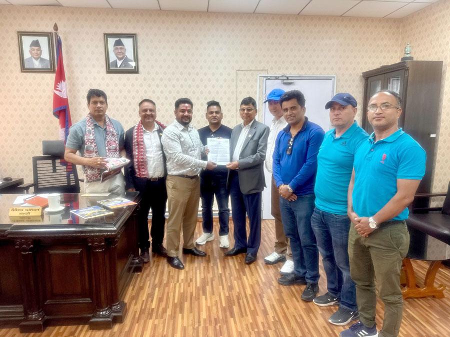 काठमाडौं । नेपाल हेभी इक्विपमेन्ट व्यवसायी महासंघको नवनिर्वाचित कार्यसमितिको टोलीले भौतिक पूर्वाधार तथा यातायात मन्त्री देवेन्द्र दाहाललाई भेटगरी ज्ञापन पत्र बुझाएको छ । महासंघका अध्यक्ष उमाकान्त शर्माको नेतृत्वमा मन्त्रालय गएको टोलीले ज्ञापन पत्र बुझाउँदै हेभी इक्विपमेन्ट व्यवसायका सन्दर्भमा सरकारले गर्नुपर्ने मागहरुका बारेमा ध्यानाकर्षण गराइएको हो ।