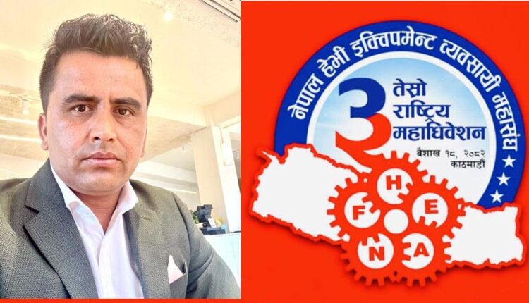 हामी नेपाल हेभी इक्विपमेन्ट व्यवसायी महासंघको छैटौं वार्षिक साधारणसभा तथा तेस्रो अधिवेशनको संघारमा छौं । वैशाख १८ गते हुने महाविधेशन सफल बनाउन देशभरका व्यवसायीलाई आह्वान गर्दछु । सबै साथीहरुको साथ र सहभागितामा सर्वसम्मत नयाँ नेतृत्व चयन गर्दै महासंघलाई नयाँ उत्साहका साथ अगाडि बढाउनेछौं । महाधिवेशनमा सम्पूर्ण व्यवसायीहरुलाई स्वागत गर्दछु ।