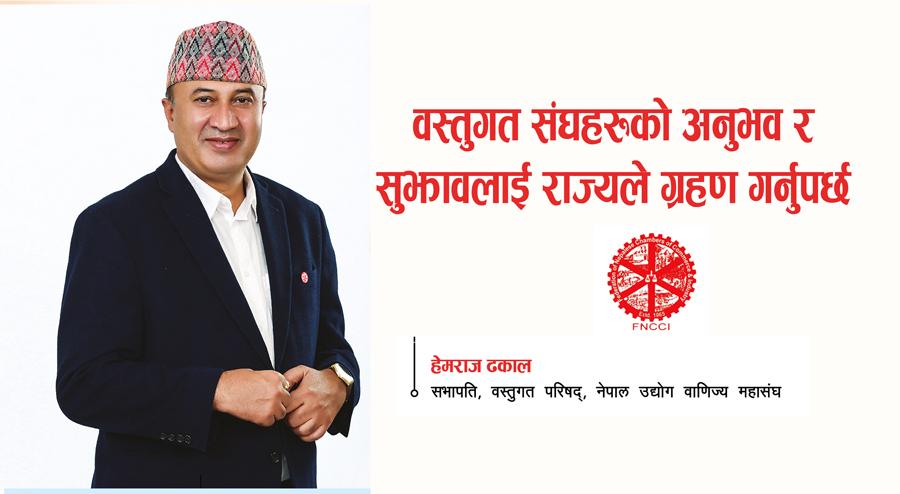बजेट बनाउँदा, मौद्रिक नीति ल्याउँदा, लगानी बढाउँदै, सम्भावना भएका ठाउँहरुलाई प्रवद्र्धन गर्नका लागि वस्तुगत संघहरुको राय मात्रै लिएपनि पुग्छ भन्ने हामीलाई लाग्छ । किनकी त्यस्ता वस्तुगत संघहरुमा आआफ्नो क्षेत्रमा लामो अनुभव संगालेका र विज्ञता हासिल गरेका व्यक्तिहरु छन् । संघलाई स्थापना गरी आजको दिनसम्म ल्याइपु¥याउँदा नेतृत्वहरुले धेरै अनुुभव हासिल गर्नु भएको छ । त्यो अनुभवलाई राज्यले ग्रहण गर्नुपर्छ । वस्तुगत संघहरुलाई राज्यले स्टेकहोल्डर मानेर अगाडि बढ्यो भने देशमा सकारात्मक परिवर्तनको लागि राम्रो सम्भावना पनि रहन्छ ।