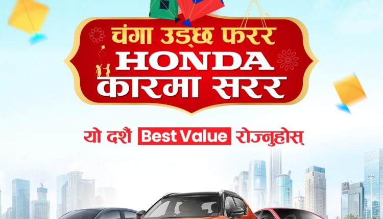 काठमाडौं । नेपालका लागि होन्डा कारको आधिकारिक बिक्रेता स्याकार ट्रेडिङ्ग कम्पनी प्रा. लि. ले दसैं अवसर पारेर आफ्ना ग्राहकहरूका लागि आकर्षक योजना “चंगा उड्छ फरर, होन्डा कारमा सरर” सार्वजनिक गरेको छ।