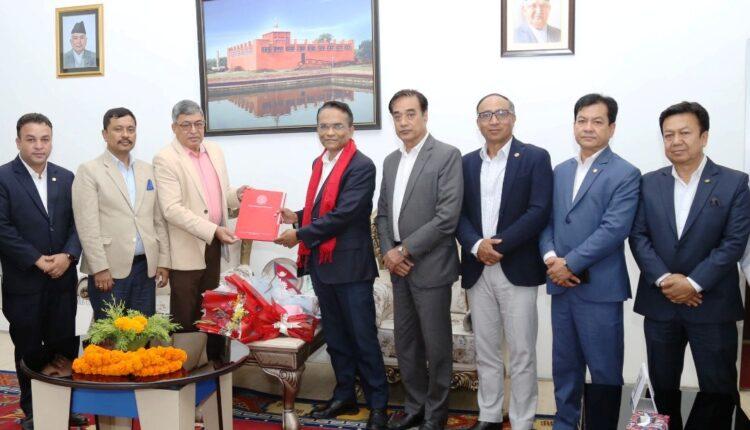 काठमाडौं । नेपाल चेम्बर अफ कमर्सले नवनियुक्त गभर्नर डा. विश्वनाथ पौडेललाई सफल कार्यकालकका लागि बधाई एवं शुभकामना व्यक्त गरेको छ । चेम्बरका कार्यबाहक अध्यक्ष दिपक कुमार मल्होत्रा सहितको पदाधिकारी टोलीले बालुवाटारस्थित नेपाल राष्ट्र बैंकको कार्यलयमा गएर डा. पौडेललाई बधाई एवं शुभकामना दिएको हो ।