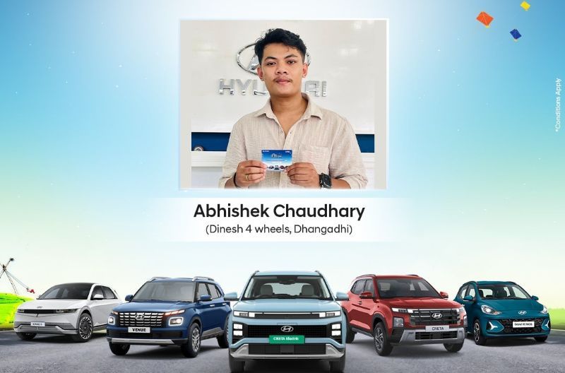 काठमाडौं । धनगढीका अभिषेक चौधरीले हुन्डाई कार खरिद गर्दा रु १० लाख नगद जितेका छन् ।