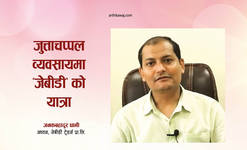 नेपालमा जुत्ता तथा चप्पल उद्योग पछिल्ला वर्षहरूमा तीव्र गतिमा अगाडि बढिरहेको छ। यस क्षेत्रमा कच्चा पदार्थदेखि तयार उत्पादनसम्मको आपूर्ति श्रृंखला सुदृढ बनाउन योगदान पुर्याउँदै आएको संस्था हो जेबीडी ट्रेडिङ प्रालि। आर्थिक वर्ष २०७२–०७३ मा स्थापना भएको यस कम्पनीले जुत्ता, चप्पल तथा तिनका लागि आवश्यक सोल, फाइबर, रेग्जिन र सिलास्टिकजस्ता कच्चा पदार्थको थोक कारोबार गर्दै आएको छ। कम्पनीले विशेष रूपमा ‘टिबीएल’ ब्रान्डका जुत्तामा काम गर्दै आएको छ भने युरोपियन मापदण्डमा बनेको ‘युरो’ ब्रान्डको पिओर सोल बजारमा निकै लोकप्रिय छ। भैरहवामा रहेको ‘एक्सन पोलिमर्स लिमिटेड’ सँग साझेदारीमा काम गर्दै आएको जेबीडी ट्रेडिङ प्रालिले हालै ‘पोलिथर’ सोल बजारमा ल्याएको छ, जुन नेपालमा मात्र नभई भारतमा समेत निर्यात भइरहेको छ। नेपालमा जुत्ता उद्योग आत्मनिर्भर हुँदै गएको सन्दर्भमा कम्पनीका अध्यक्ष जनकबहादुर धामीसँग गरिएको कुराकानी यहाँ प्रस्तुत गरिएको छ।