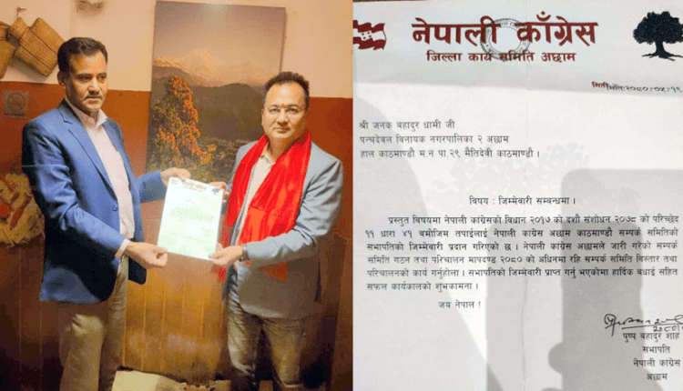 काठमाडौं । नेपाली कांग्रेस अछाम-काठमाडौं सम्पर्क समितिको सभापतिको जिम्मेवारी काँग्रेस नेता जनक बहादुर धामीले पाएका छन् ।