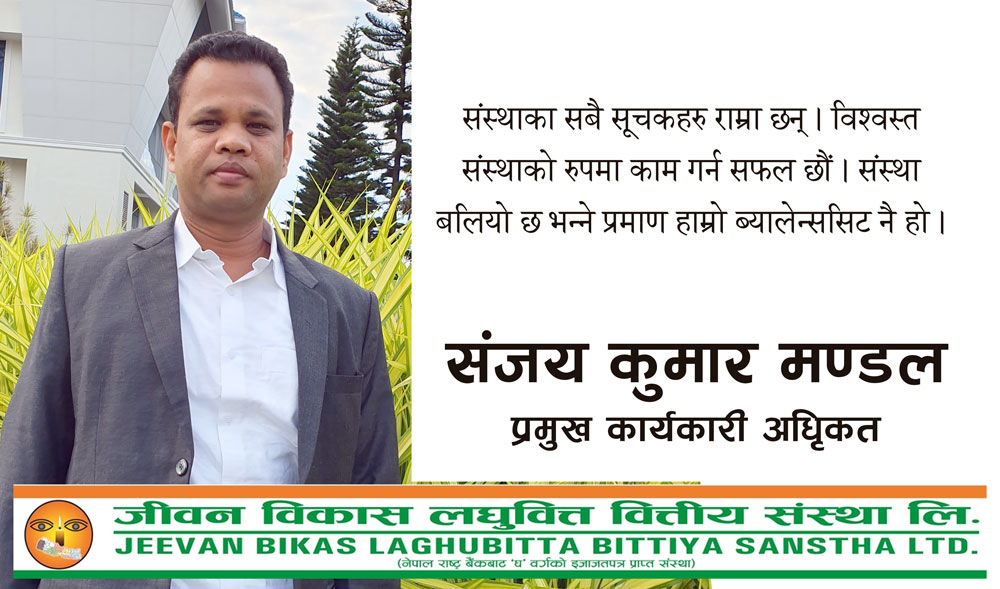 मोरङको कटहरिमा प्रधान कार्यालय रहेको जीवन विकास लघुवित्त वित्तीय संस्था लि.ले यही असार ११ गतेबाट सर्वसाधरणका लागि आइपिओ निश्कासन गर्दैछ । नेपाल राष्ट्र बैंकबाट ‘घ’ वर्गको इजाजत प्राप्त राष्ट्रियस्तरको संस्थाले प्रदेश १, २ र बागमती प्रदेशका १९ जिल्लामा १ सय ३८ वटा शाखाबाट वित्तीय सेवा प्रदान गरिरहेको छ । यसैक्रममा संस्थाको वित्तीय अवस्था लगायत विविध विषयमा केन्द्रित रहेर संस्थाका प्रमुख कार्यकारी अधिकृत संजय कुमार मण्डलसँग आर्थिक आवाजले गरेको कुराकानी :