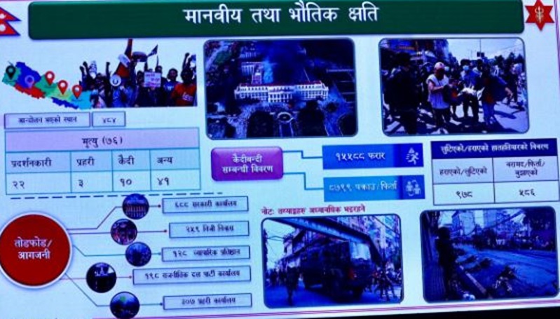 काठमाडौं । नेपाली सेनाले भदौ २३ र २४ गते देशभर भएको जेनजी विद्रोहका क्रममा २२ जना प्रदर्शनकारीको मृत्यु भएको पुष्टि गरेको छ । सेनाले शुक्रबार पत्रकार सम्मेलनमार्फत जारी गरेको प्रतिवेदनमा कुल ७६ जनाको ज्यान गएको विवरण सार्वजनिक गरेको हो ।