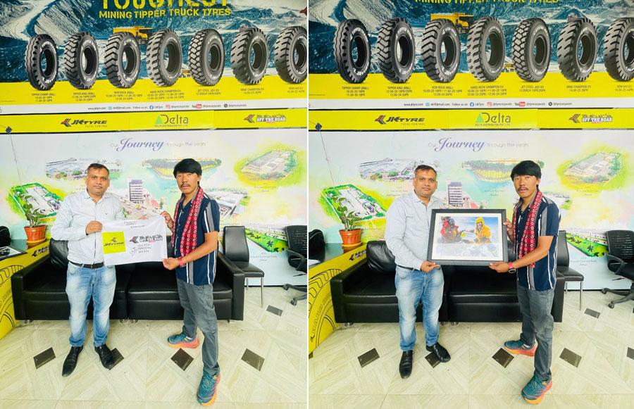 जेके टायरका लागि नेपालको आधिकारिक बिक्रेता डेल्टा डिष्ट्रिव्युटर्स प्रालिका प्रवन्ध निर्देशक बिक्रम सिंघानियालाई शेर्पाले झण्डा हस्तान्तरण गरेका हुन् । ऐतिहासिक उपलब्धीमा जेके टायरको झण्डा फहराउन पाउँदा गौरव महसुस भएको शेर्पाले बताए ।