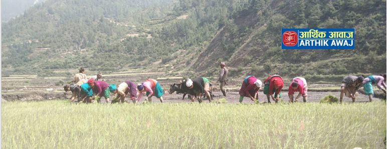 मार्सी धान रोप्न व्यस्त जुम्लाका किसान ।