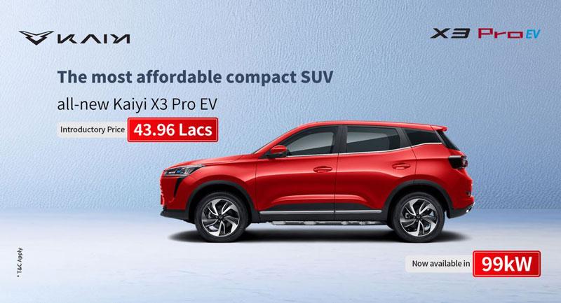 काठमाडौं । केई मोटर्सको नेपालका लागि आधिकारिक वितरक लक्ष्मी ई–मोबिलिटीले ९९ किलोवाट मोटर पावरमा केई एक्स–३ प्रो ईभी नेपालमा उपलब्ध गराएको छ । राम्रो पर्फमेन्स र दक्षतायुक्त एक्स–३ प्रो को सुरुवाती मूल्य ४३ लाख ९६ हजार रुपैयाँ तोकिएको छ । यो अफर केहि अवधिको लागि मात्र लागु जनाइएको छ । कम्प्याक्ट एसयूभी सेगमेन्टमा यो सबैभन्दा अफोर्डेबल एसयूभी हुनेछ ।