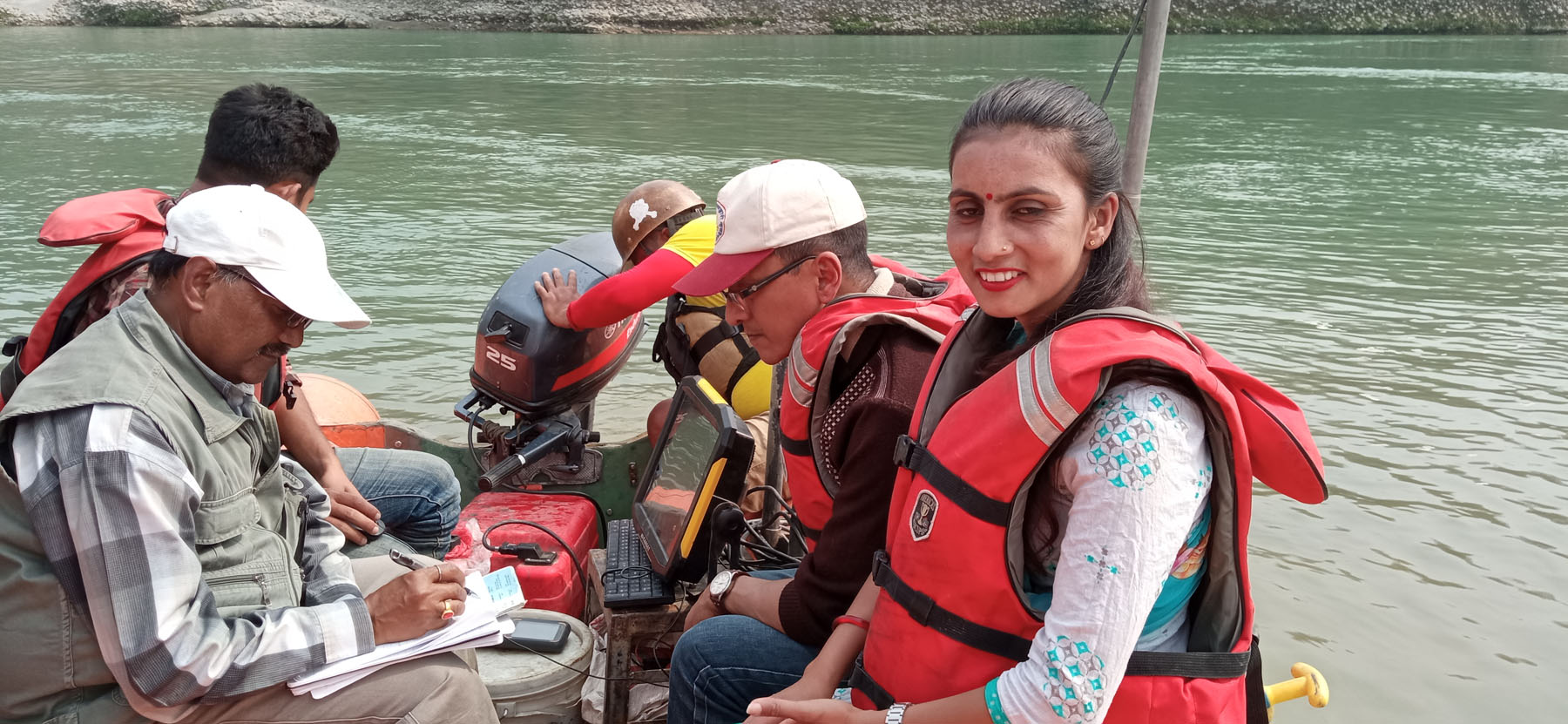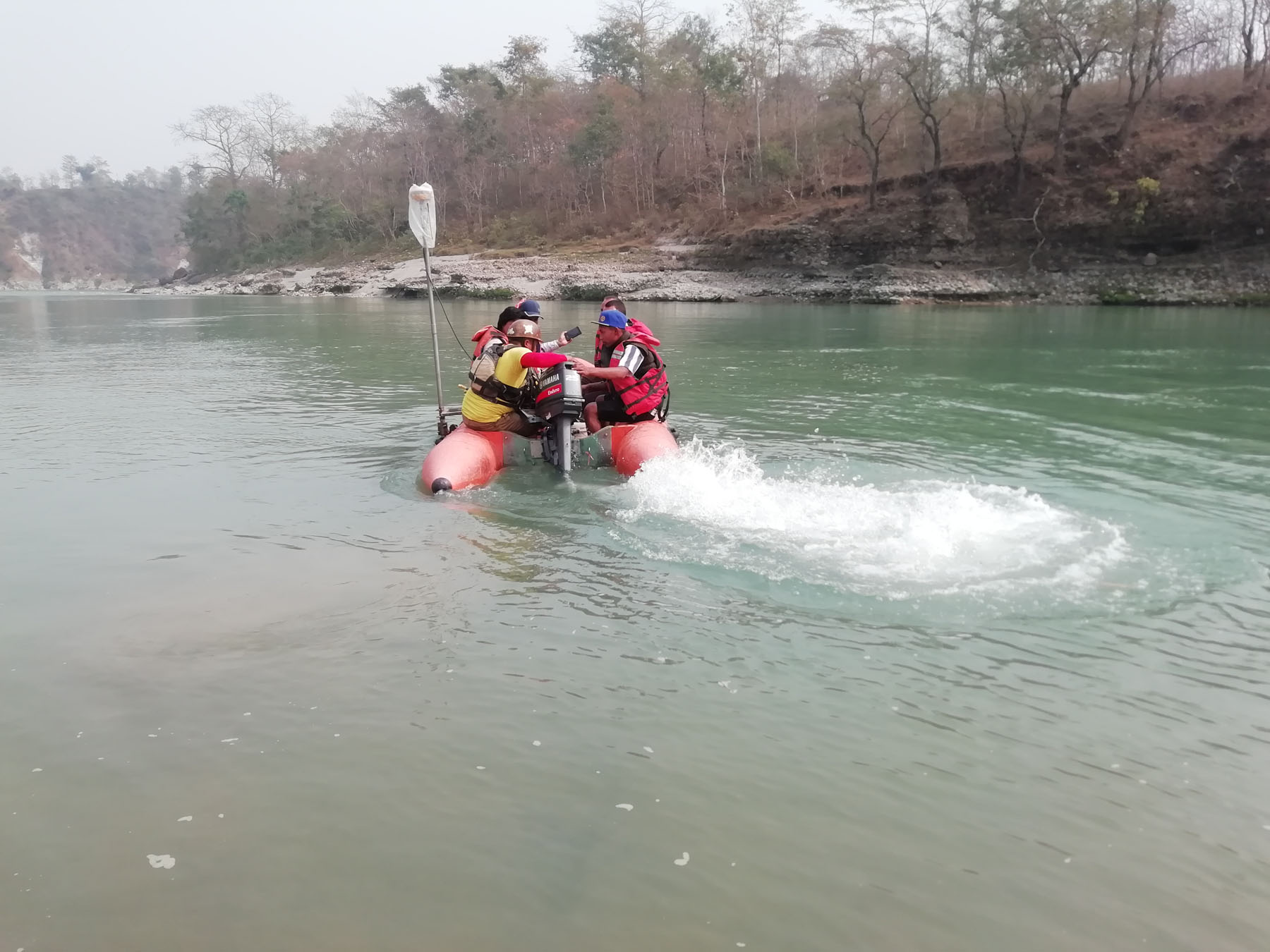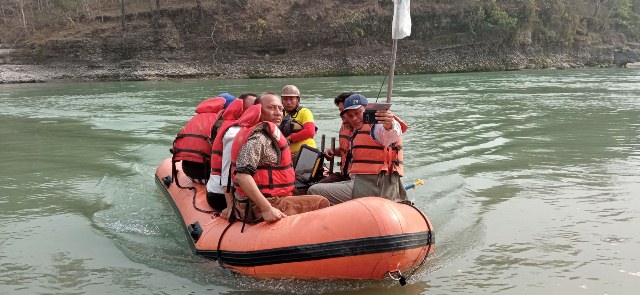 रामपुर । नेपाल पानी जहाज कार्यालयको टोलीले कालीगण्डकीको राम्दीदेखि देवघाटसम्म जलयान सञ्चालन गर्न पाल्पाको रामपुर र स्याङ्गजा चापाकोटको ज्यादीघाट क्षेत्रमा सर्भे कार्य सुरु गरेको हो । तस्वीर : सुशीला रेग्मी, रासस